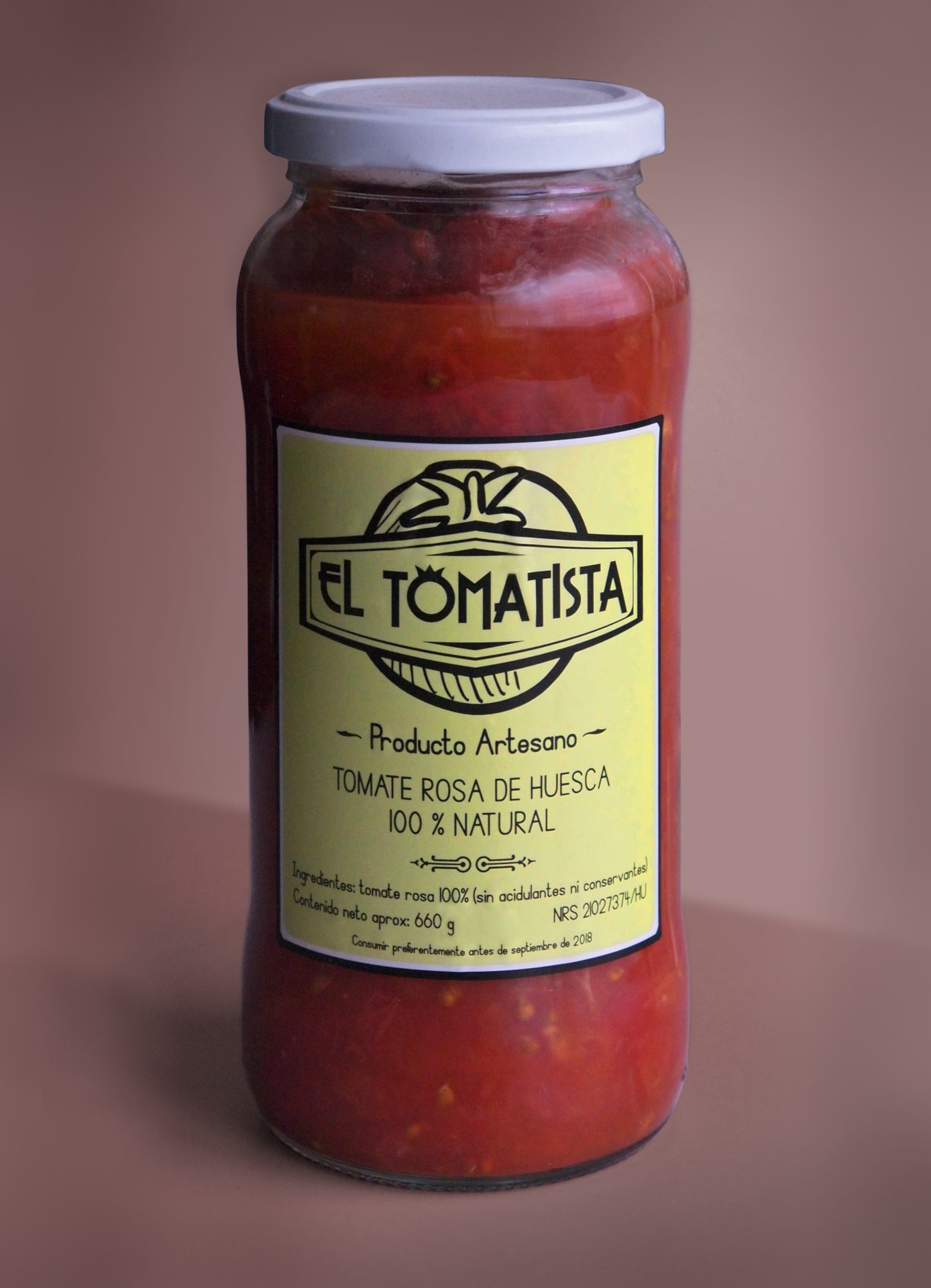 Encargo de creación de la marca, etiqueta, preproducción y gestión con los proveedores de impresión a partir del namimg ya propuesto, para un productor local de pequeñas dimensiones, artesano y de calidad, que comercializa conservas de tomate totalmente naturales. Una imagen directa, con colores de alto contraste buscando una buena visualización en lineales, que destaca el carácter artesanal/manual y sin artificios.