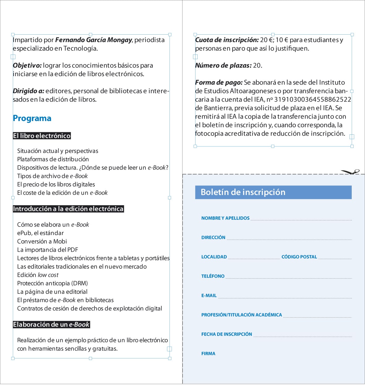 Diseño de folleto informativo del curso organizado por el Instituto de Estudios Altoaragoneses.