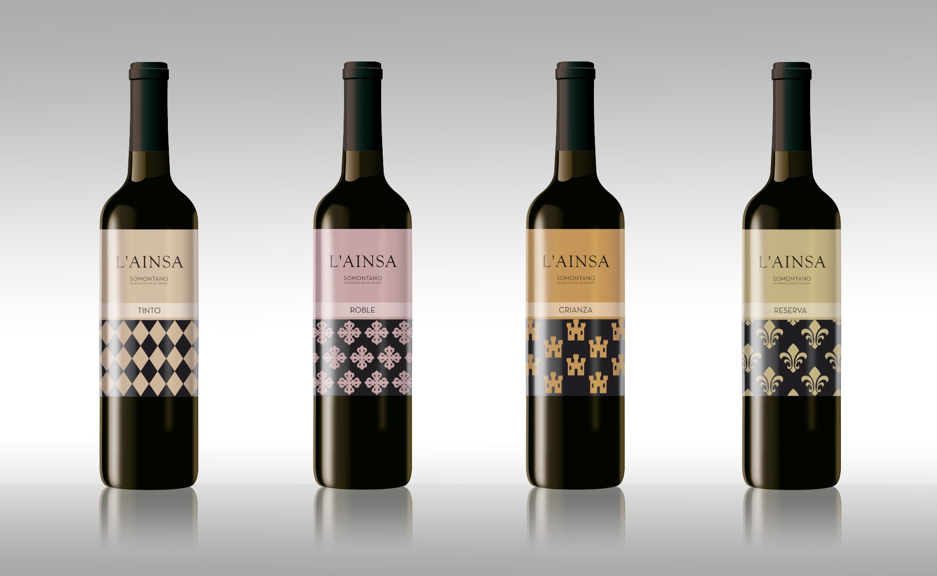 Imagen gráfica para la colección de vinos “L’Aínsa”, donde las premisas del cliente fueron la versatilidad, que fuese fácilmente reconocible, la sencillez y alta visibilidad en lineales…Y entonces empezaron a ondear los estandartes medievales en las faldas del histórico Castillo de Aínsa 😉