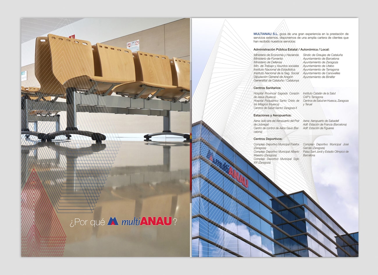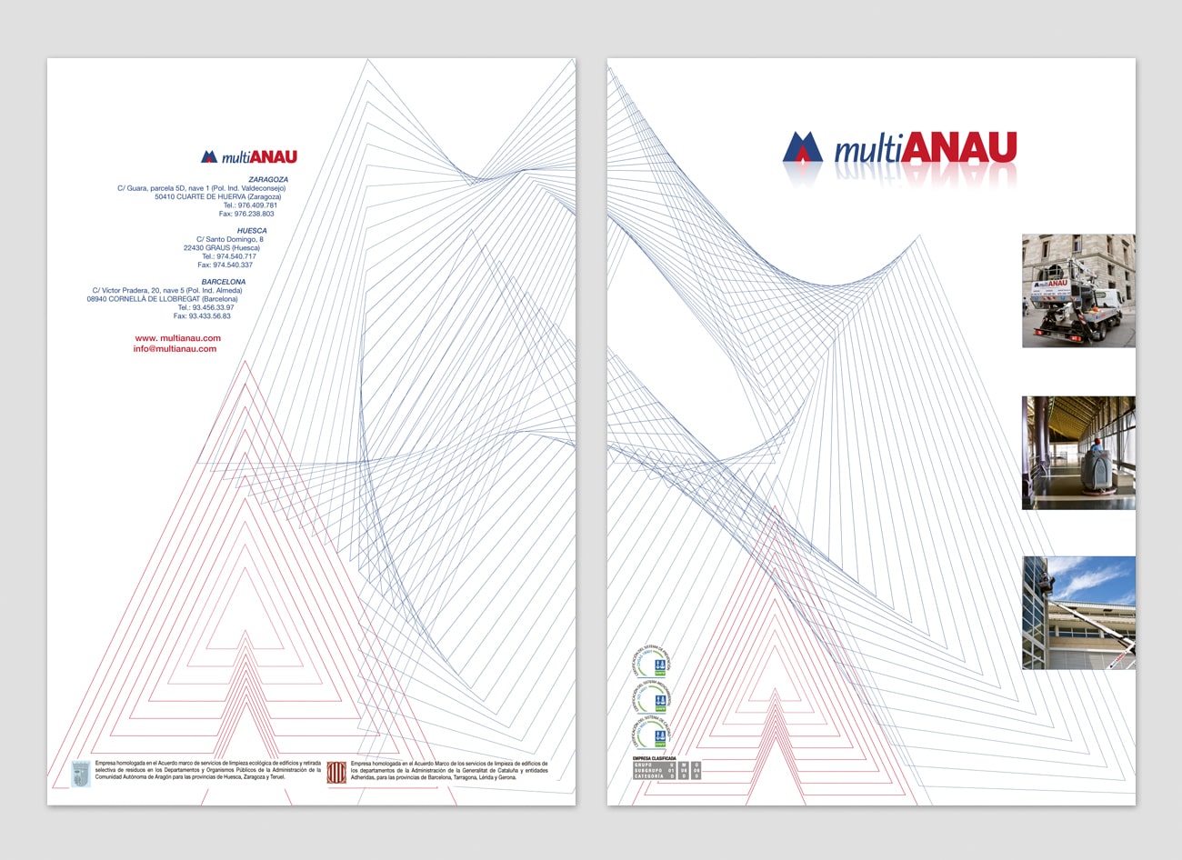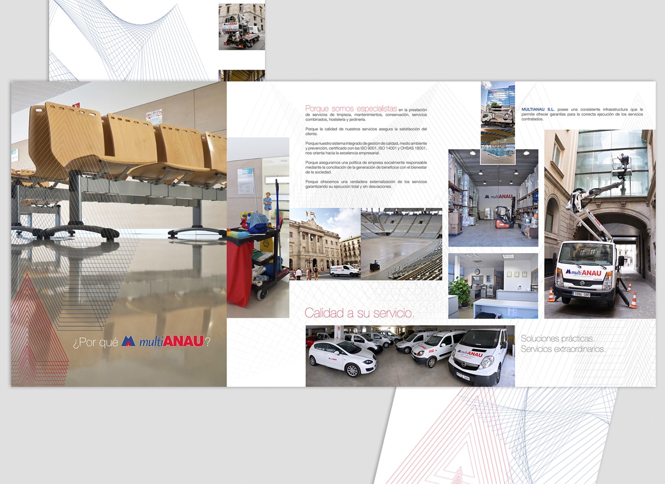 Folleto de servicios y presentación de la empresa diseñado en formato tríptico y tamaño A4, que ha servido como base para otras aplicaciones de identidad corporativa de la empresa Multianau. Realizado para Barbitania.