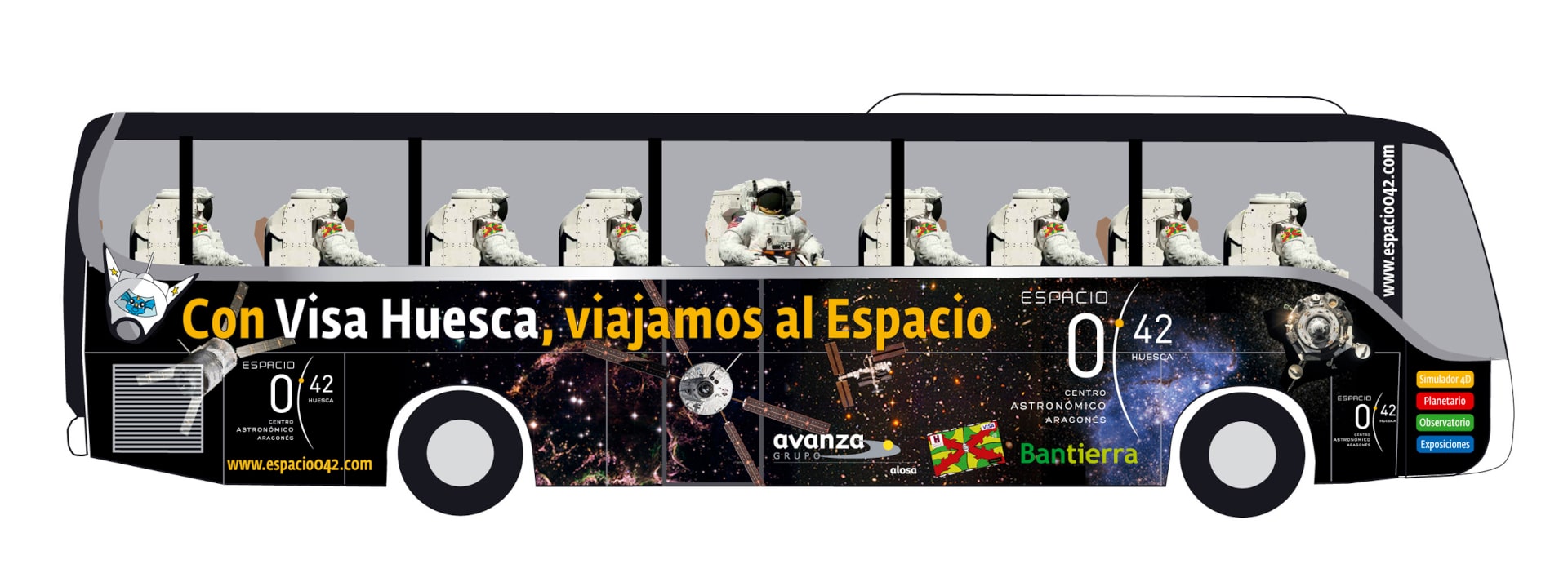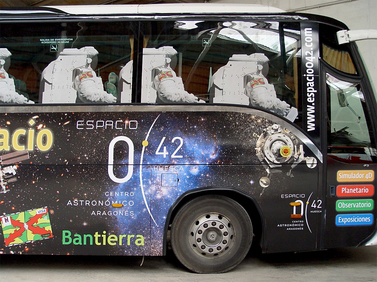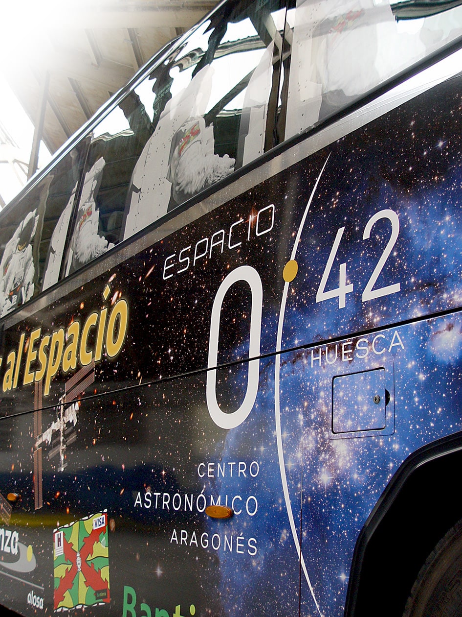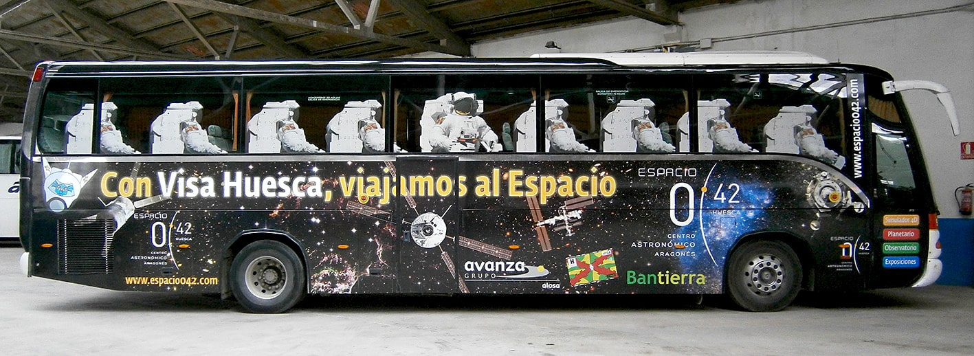 Campaña de publicidad exterior para la que se realizó la creatividad, el eslogan y el diseño gráfico. La campaña promocionaba el acuerdo entre el planetario aragonés y la entidad bancaria para facilitar un servicio de autobuses hasta el centro astronómico y descuentos con la Visa Huesca que comercializaba dicho banco.