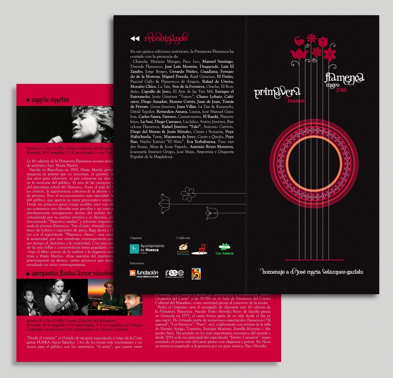 Diseño de cartel y díptico para difusión de este prestigioso certamen anual con artistas flamencos de primer nivel.